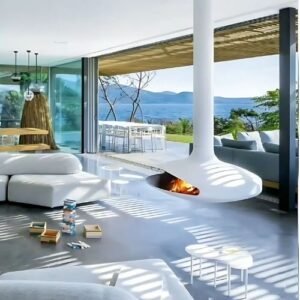 Selection of high-quality fireplaces (suspended, central, rotating, wood, and gas options) and wall-mounted and barbecues. Each product prioritizes innovative design, superior functionality, and aesthetic appeal to enhance any space.